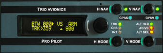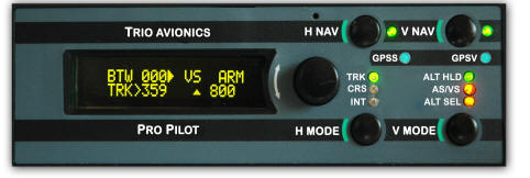 The Pro Pilot provides excellent horizontal navigation capabilities and the vertical navigation enables altitude control, climb/descent functions with airspeed limiting, and altitude pre-select. Climb/descent on airspeed is also included. The Pro Pilot uses Trio's proven "intelligent" Gold Standard servos to assure safe and reliable control actuation. While the Pro Pilot incorporates many features,