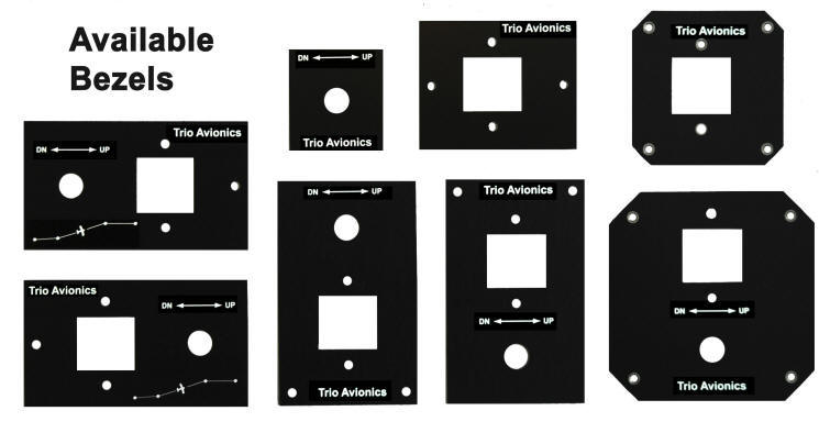 Because the LCD switch and the rotary encoder are two separate units, they may be mounted in several possible configurations. To accommodate a number of different arrangements, Trio can provide switch bezels and mounts to help make an attractive installation. The bezels that we currently offer are shown below. To download a PDF document that gives dimensions, click here.